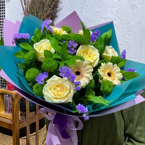 Цветочное счастье-корзинка из хризантем и кустовых роз