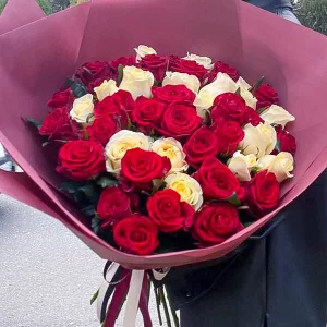 Букет из красных роз в оформлении (высота стебля 60 см)