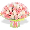 Роза белая (кремовая) и розовая 70 см - 51 шт , упаковка фетр.