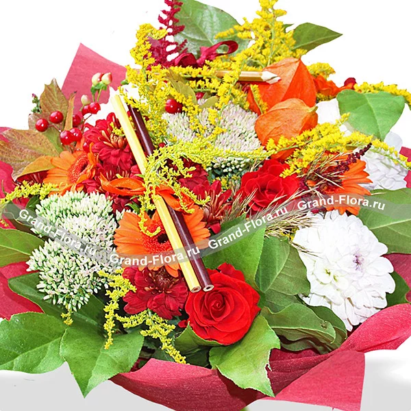 Снова в школу! - букет из гербер и роз