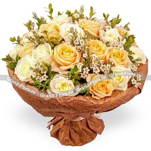 "Осенний шик " - букет из кремовых и белых роз воплощенная в каждом лепестке нежность. Элегантный и стильный, этот букет не оставит равнодушным получателя. Невозможно не восхищаться классической строгостью и одновременной нежностью этих цветов! Вы можете заказать букет в любой из представленных вариаций от небольшого букета-комплимента, до пышного облака в составе "Де Люкс". Такой подарок запомнитя надолго и приятно порадует получателя.